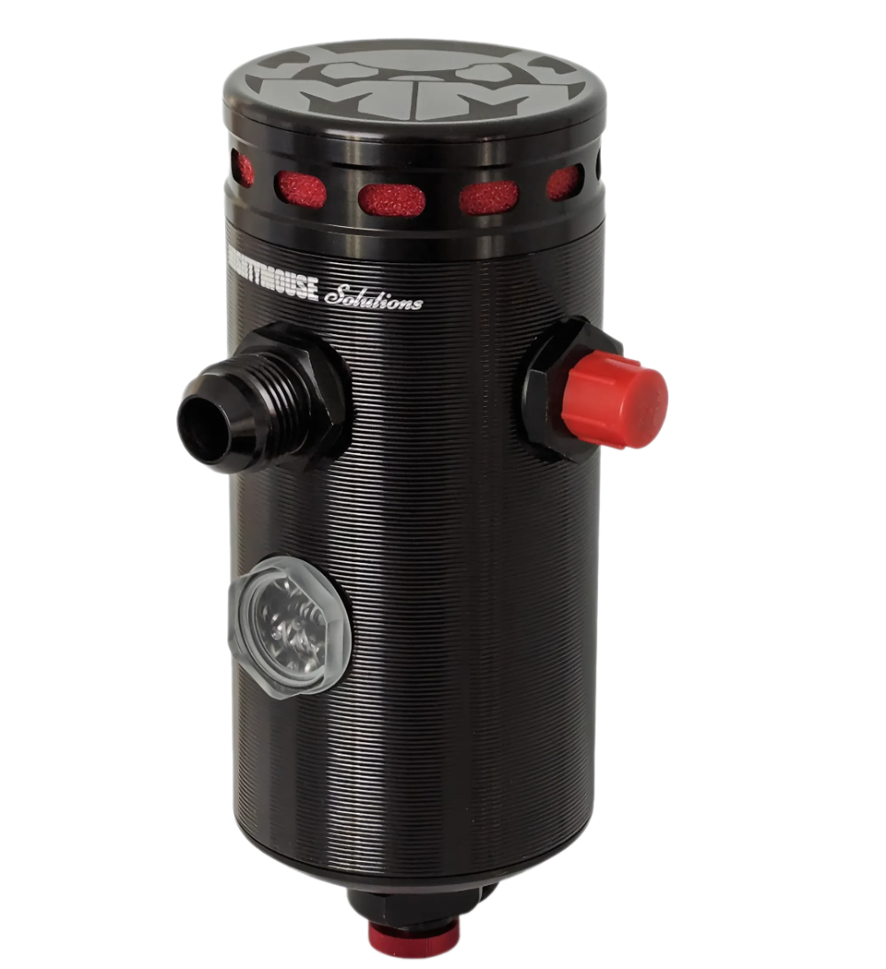 • PCV Inline Setup: Separates vapors for up to 1000 HP using -8AN or OEM quick connect fittings.