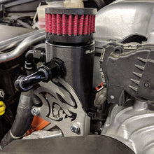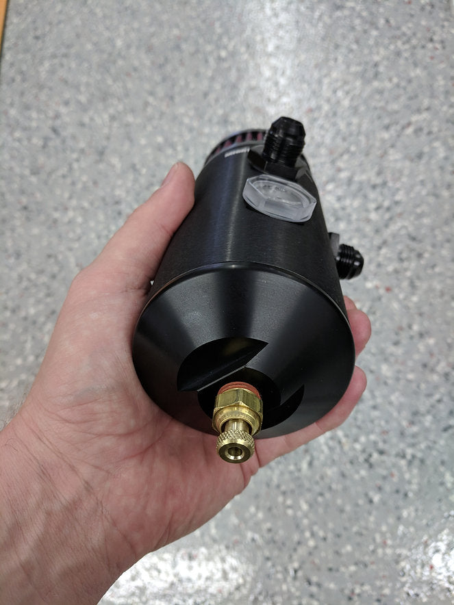 Inline PCV Design: Captures vapors for stock to bolt-on power with -8AN or OEM connections.