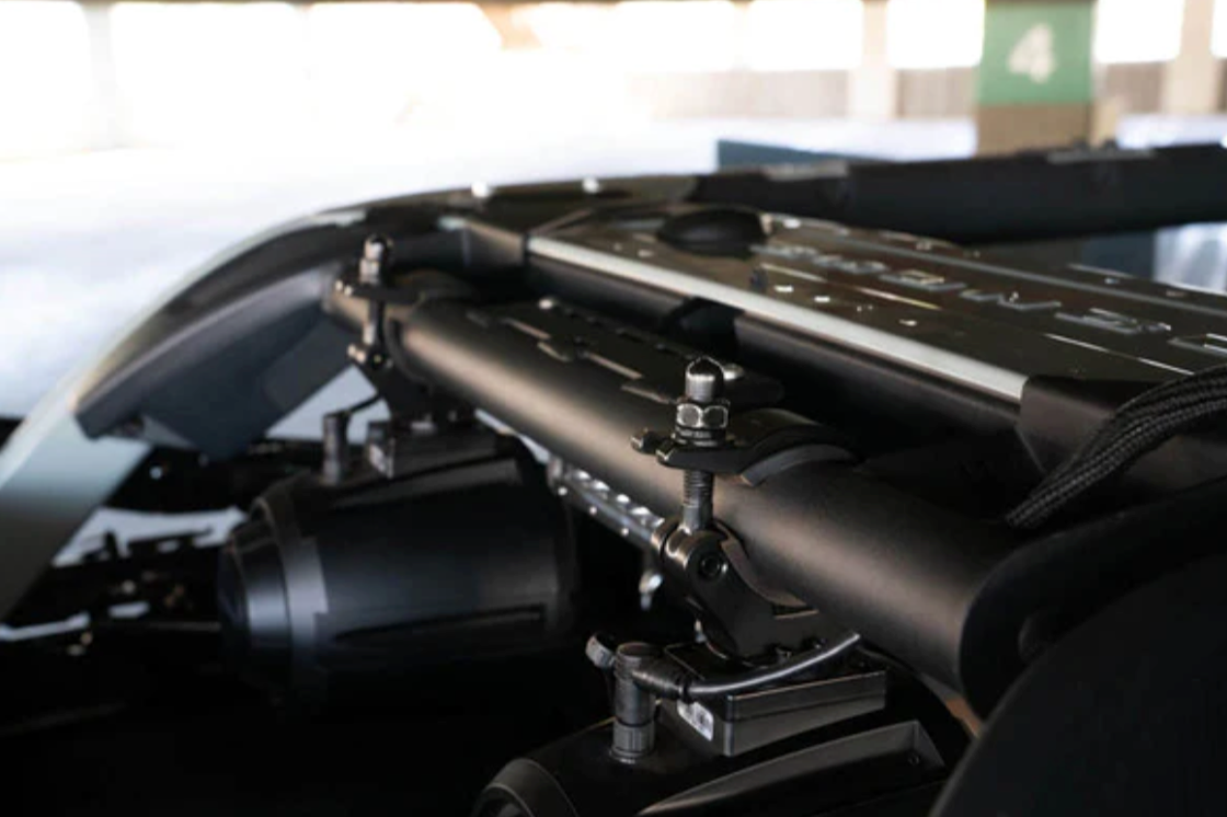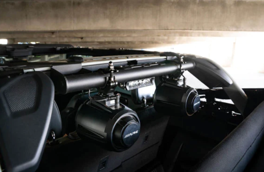 This crossbar was designed to provide your Bronco additional mounting options for rear facing LED lights and speaker cans, or a speaker bar.?The bar measures 29-inches in total length, and is 2-inches in diameter. There is a 10-inch slotted flat mount in the middle of the bar. 4 holes, 2 towards each end, allow you to run wiring hidden inside the bar. It is finished in a Micro-Texture Black Powder Coat, which blends well with the OEM trim. There are several possible configurations you can run. Two speaker cans with roll bar clamps can be installed, with up to a 6-inch light bar or two 3-inch pod lights on the flat mount. You can run a 20-inch light bar across the length of the bottom if utilizing the back rail mounts on the bar. Alternatively, a speaker bar up to 28-inches wide with roll bar clamps can be mounted across the bottom of the bar.