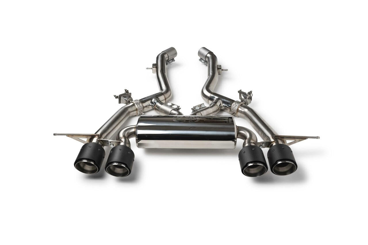 The Fabspeed Motorsport Valvetronic Exhaust System relieves you of the subtle OEM sound and gives you the volume and tone that’s missing from the factory system. With a slight increase in volume on the throttle and a nice burble at idle, this is the perfect “grand touring” M3/M4 exhaust system. Downshift pops and bangs in sport mode are louder, but not obnoxiously so. This system has no drone at all cruising around town or on the highway.