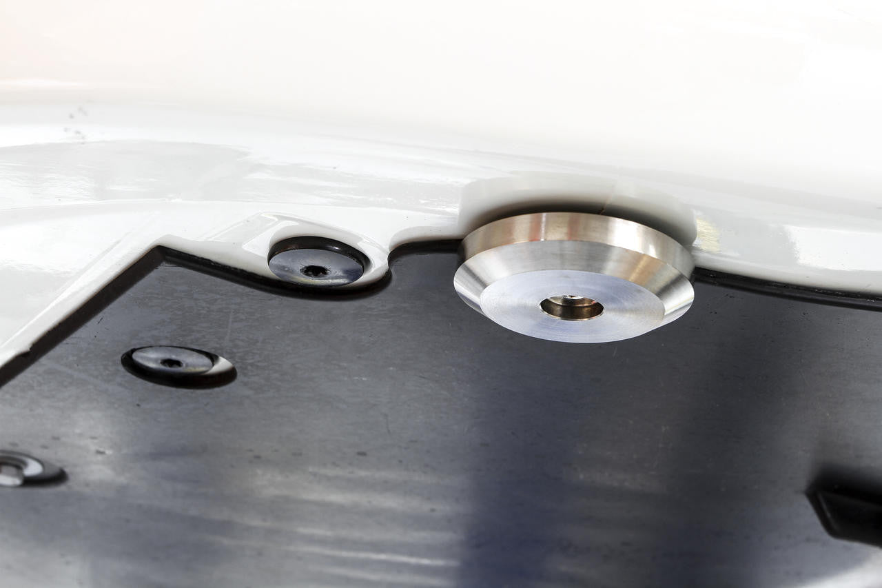 Protect the front underside bumper cover of your Ferrari 458 Italia with aluminum skid discs. Simple to attach / bolt-on with hardware. NEVER EVER ruin the front bumper cover on Super Steep Driveway entry and Exits. The perfect solution to prevent damage.
