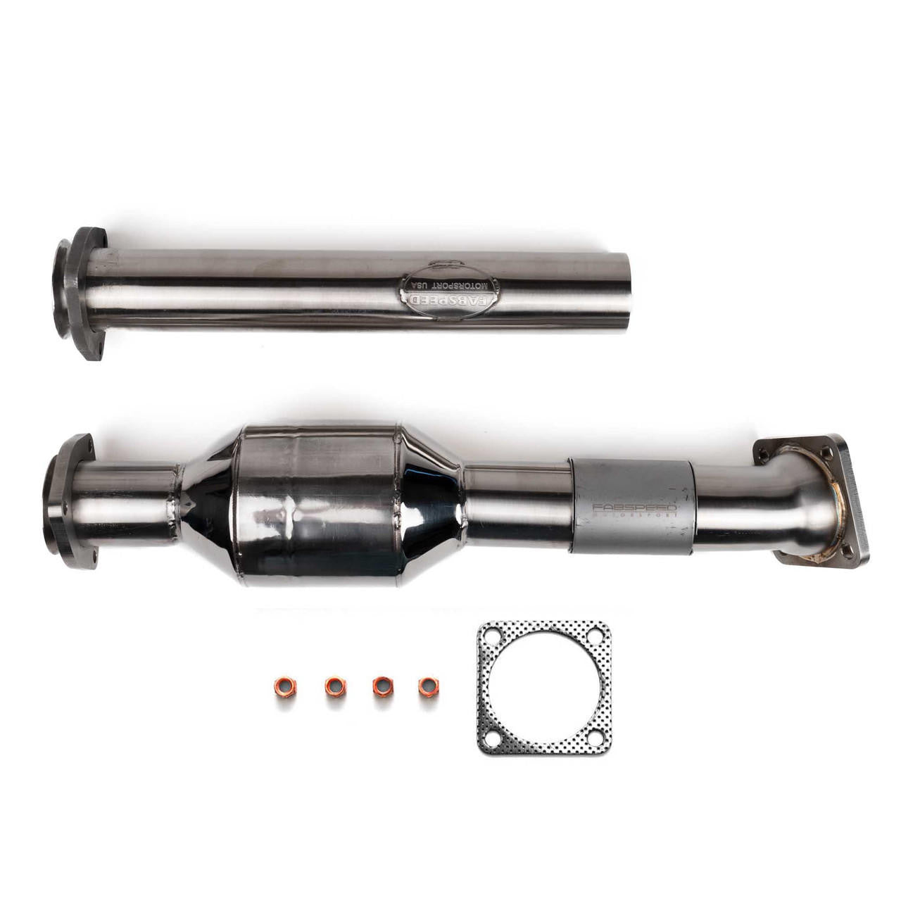 Fabspeed HJS German tri-metallic catalytic converters are State of the Art ultimate emission legal performance enhancing components. Your sports car , SUV and Truck equipped with HJS German catalytic converters is 100% Guaranteed to make more Horsepower, Torque, enhanced sports car, better fuel economy than any OEM stock catalytic converter and or ANY Illegal Cat Bypass pipe downtube. In fact, if you have any older cars, used cars and or cars with FAILING, DELETED or Butchered catalytic converters then do yourself a favor and UPGRADE your car with a set of Fabspeed HJS German high-flow trimetallic OBD2 European Certified Homologated catalytic converters. Its the Right thing to do to achieve CLEAN and GREEN Performance and leave absolutely nothing on the table for performance and sports car sound. Furthermore all the Air we breathe globally is not affected by using cat-bypass pipes or stupid solutions like Non Catted downtubes.