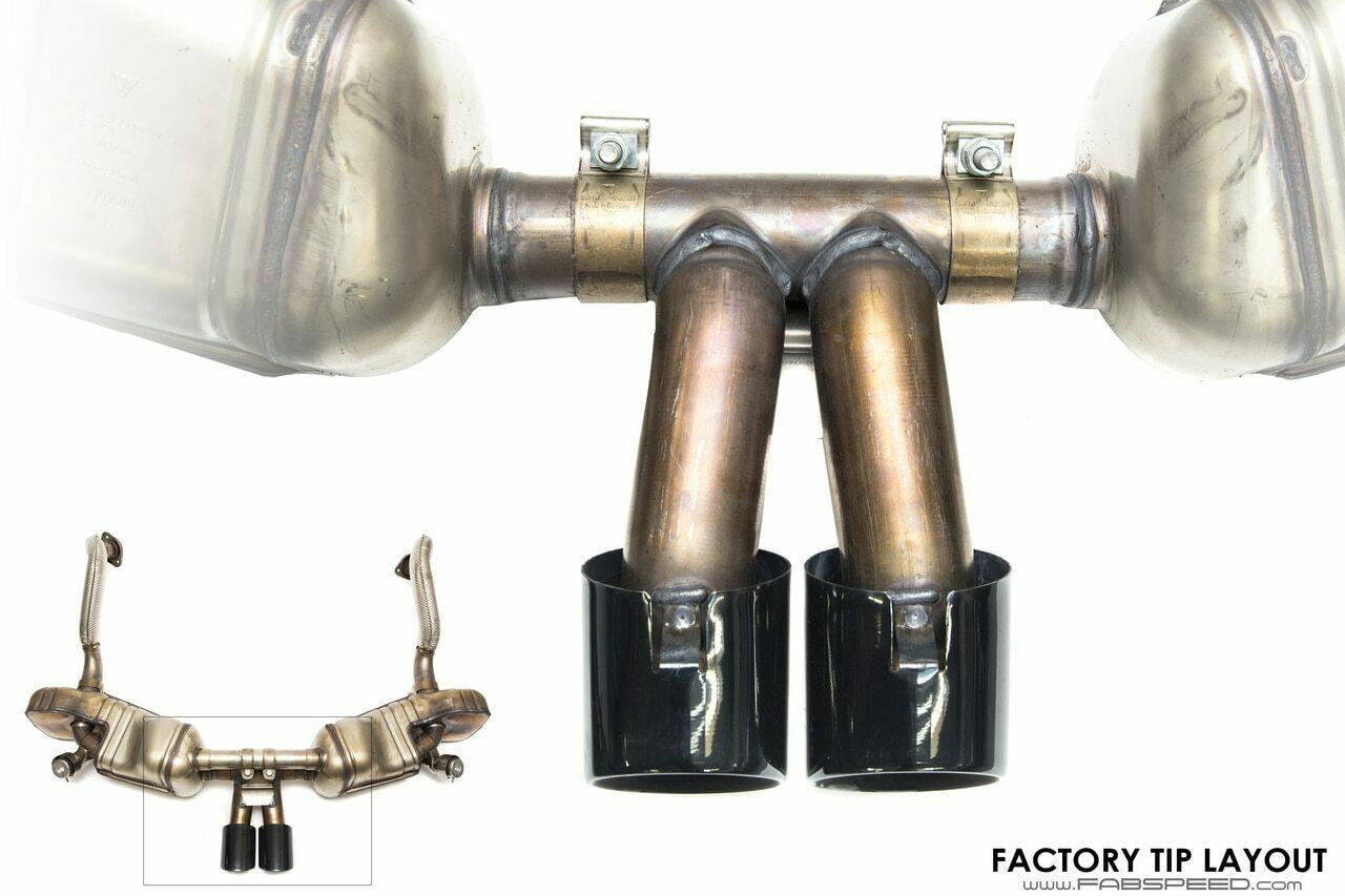 These Fabspeed X pipe replacement slip-on exhaust tips for the Porsche 981 Cayman GT4 are a quick bolt-on option for adding a SIGNIFICANT POWER, some sports car sound upgrading the look of the already aggressive rear-end. Available in your choice of finish to compliment your vehicles look and style. These exhaust tips are the extra flair that will set your Porsche apart.