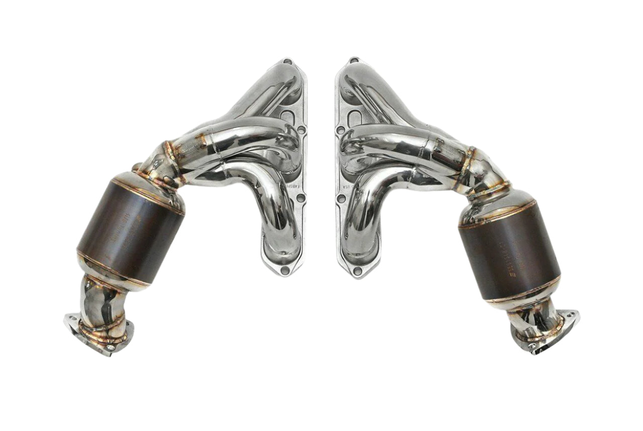 Equal-length high performance headers improve exhaust flow and sports car sound; Sport Headers include 200-cell HJS GERMAN Imported Sport Catalytic Converters.