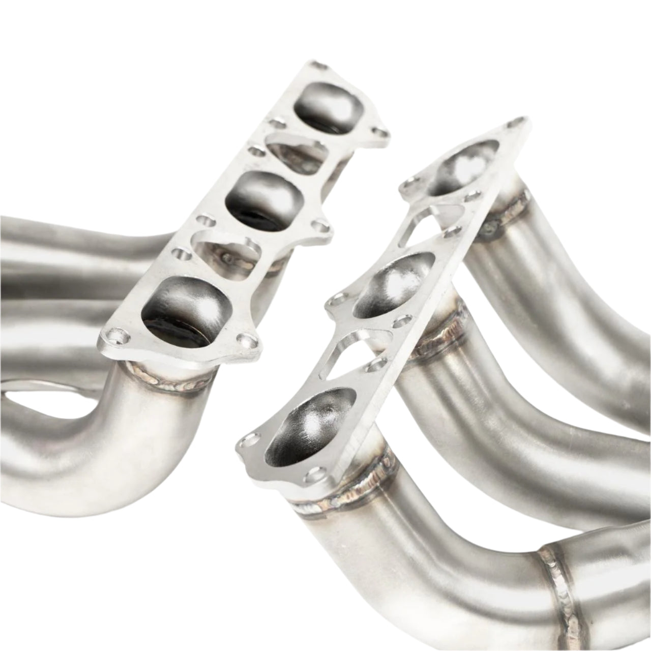 When the first 991 GT3s landed on North American soil, our engineering team immediately got to work and developed a Race Header to maximize the performance of the track weapon. Our original medium tube modular header design was very successful, but we were looking for more power. Consequently, we were approached to enhance a GT3 RS and welcomed the opportunity to refine our long tube header design further. After extensive development, including dyno and track testing of various designs, we've uncovered the correct formula to unlock the maximum performance and exhaust flow from the Porsche 991 GT3 / GT3 RS / 911 R. There is no better designed and engineered race header system for the Porsche 991 GT3 / GT3 RS / 911 R available worldwide. The Fabspeed Motorsport GT3 header was developed in conjunction with the racing engineers at Burns Stainless LLC Costa Mesa California. Burns Stainless is a World leader and innovator in stainless steel header design, testing and building high velocity merge collectors.