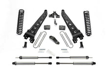 Fabtech?s 6" Radius Arm lift kit for the Ford F450 and F550 Super Duty is built to handle the on and offroad demands of the truck enthusiast. This vehicle?s suspension is more robust than the Ford F250 and F350 and therefore demands specialty parts only available from Fabtech. This Radius Arm system is a complete upgrade to the factory suspension and will provide additional strength for use with oversized tires. The design has been proven in over 10 years of service in consumer, commercial and military applications. High quality components with properly designed suspension geometry is what sets this system apart from all other Radius Arm suspensions. Each Fabtech component has been designed with specific features and benefits that create this quality suspension system. For a greater understand of each these components please see below. FEATURES: RADIUS ARM - Tubular construction with dimple die side plate for superior strength. Arms are offset to allow for full turning radius of the Dana Super 60 front axle with wide tires. Fabtech Radius Arms have 1 degree of caster built in for the increased ride height. Adjustable alignment cams on the Arms allow for an additional 1.5-2 degrees of caster adjustment. COIL SPRINGS - American made coil springs have been designed for a very compliant ride quality both on and offroad. Each coil is preset during the manufacturing process to insure no ride height settling over time. Allows for a 2" increase in wheel travel over stock when used with Fabtech shock absorbers. TRACK BAR BRACKET - 1/4" thick steel bracketry repositions the factory track bar to center the axle under the vehicle with the increased lift height. Super stout box style bracket is designed to eliminate deflection when the track bar moves through its full cycle. DROPPED PITMAN ARM - Forged steel construction with high strength material that exceeds the factory specifications. Designed specifically for the F450 and F550 to work in conjunction with the factory