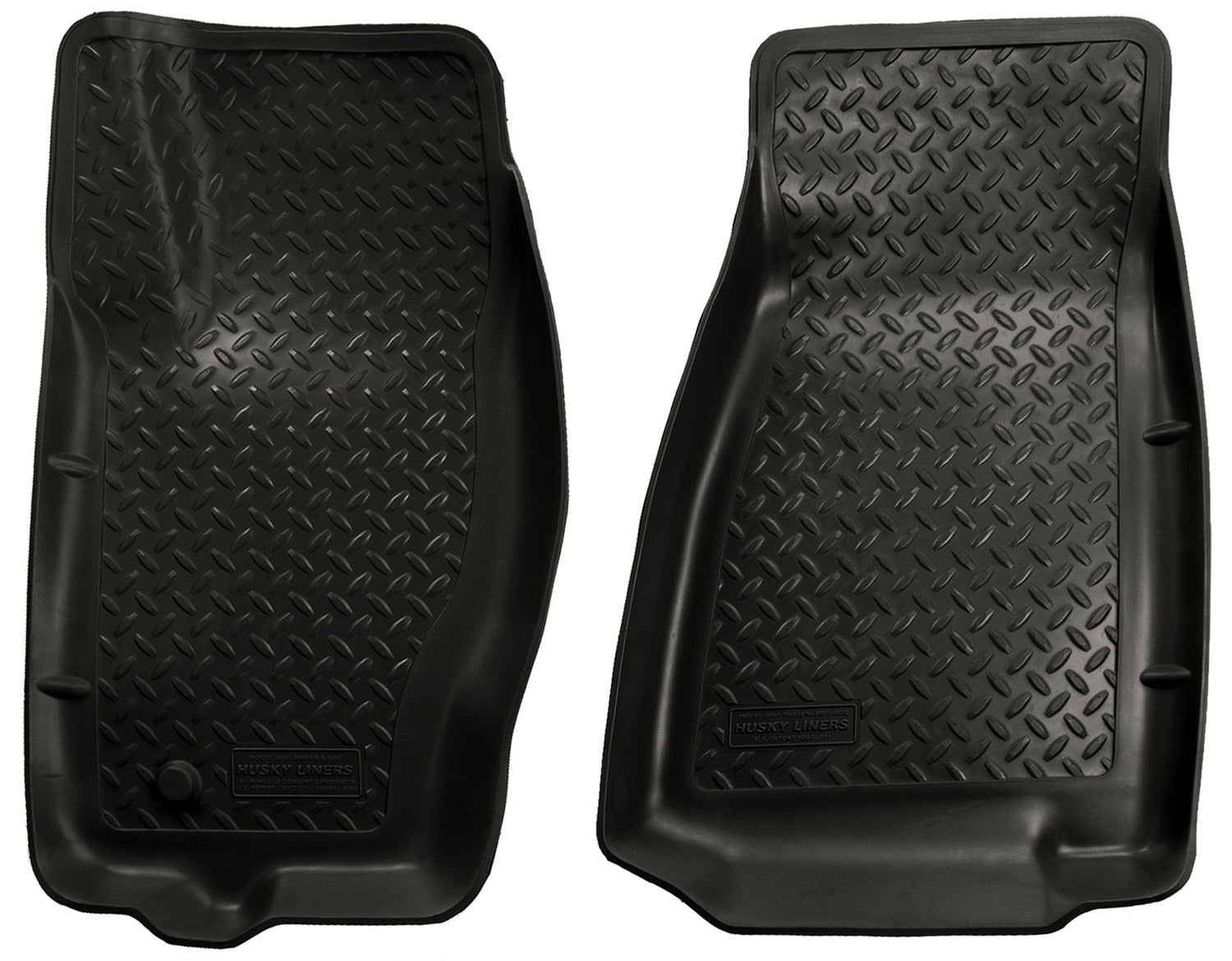 Husky Liners 30611 Classic Style front floor liners deliver rugged protection for 2005-2010 Jeep Grand Cherokee and 2006-2010 Jeep Commander. These custom-molded liners use DuraGrip material to resist chemicals and contain spills with UniEdge walls and center channels. StayPut cleats ensure secure placement for confident driving in any conditions.