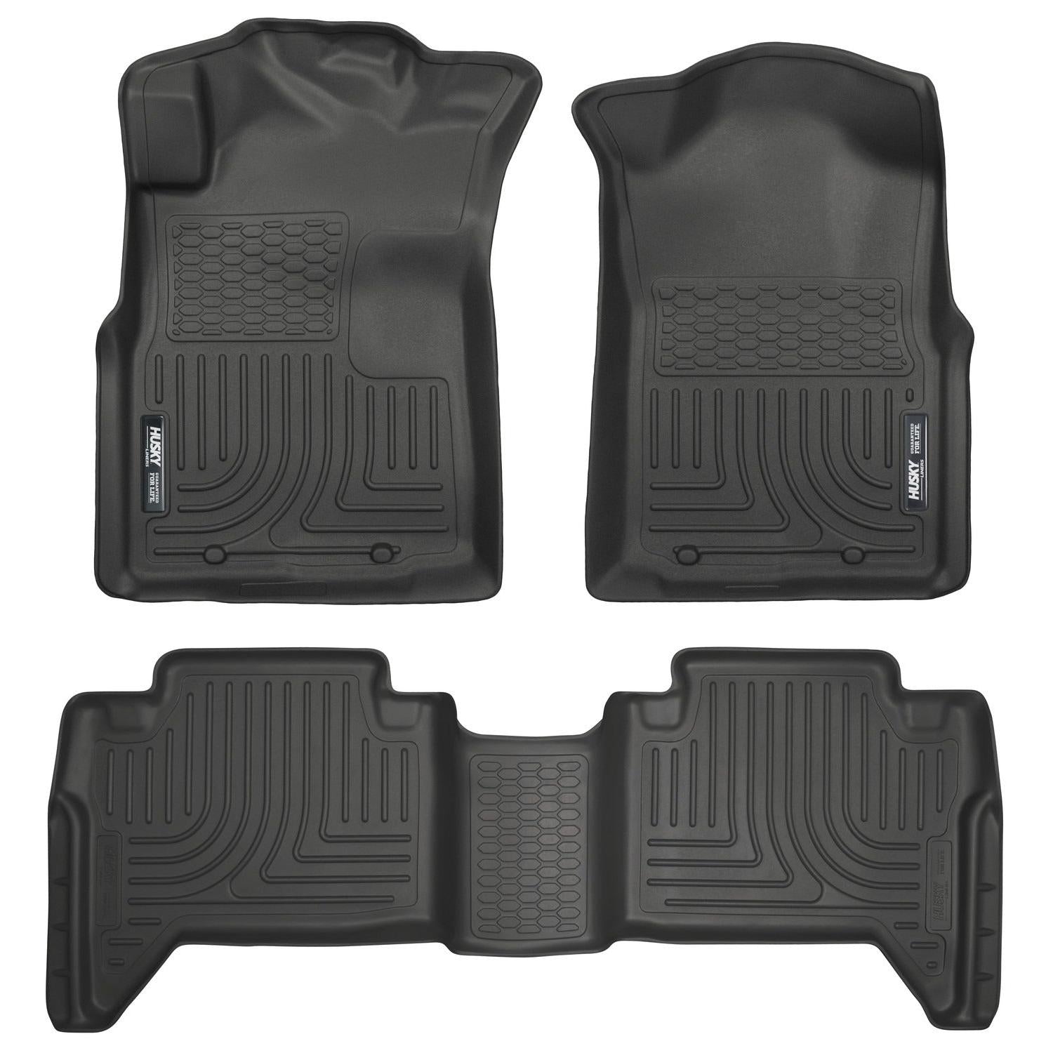Husky Liners 98951 WeatherBeater Combo provides front and second row (footwell coverage) floor protection for 2005-2013 Toyota Tacoma Double Cab models. These 3-piece black liners feature laser-scanned FormFit Design for precise contours and StayPut Nibs for secure footing. Built with ProGard formula to resist chemicals, oils, and extreme temperatures while containing spills with FormFit Edge.