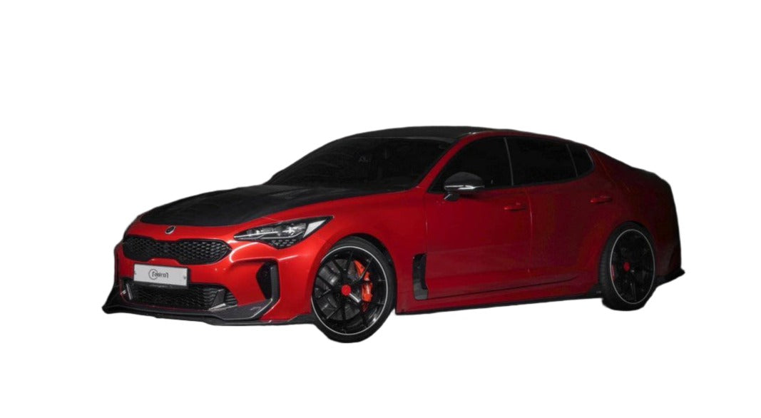 ADRO Kia Stinger carbon fiber V2 front lip is a two-piece kit that comes with an upper and lower part and still allows the vent to be 100% functional.