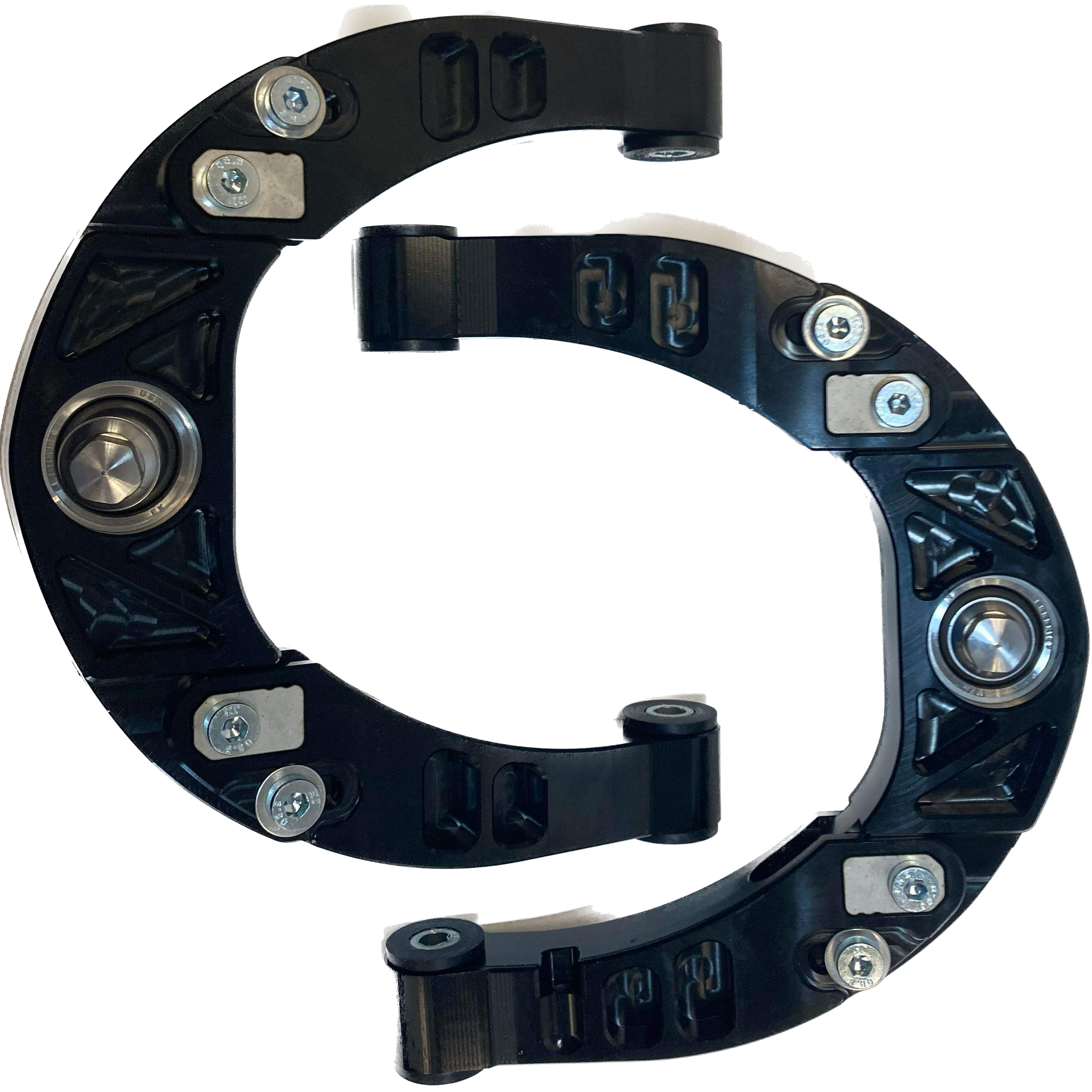 Each arm is precision machined from solid Blocks of 6061 billet aluminum and the tabs are laser-cut from steel and plated for an exact fit.