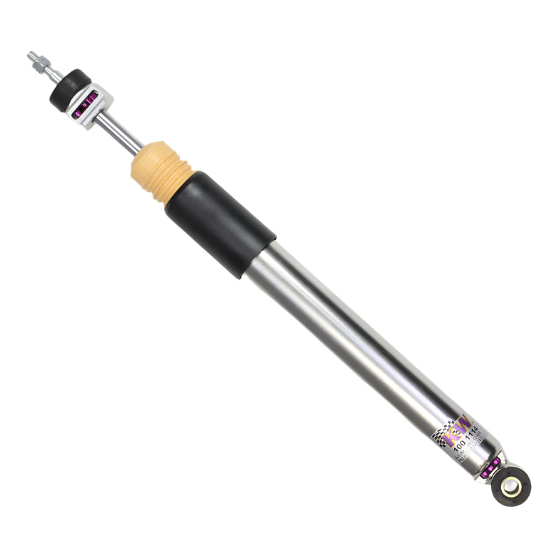 With the individually adjustable rebound setup of the KW V3 you can directly influence the handling and comfort with its precise click adjustment. Depending on the vehicle type, the rebound valves of the KW twin-tube dampers on the upper end of the piston rod will be adjusted via an integrated adjustment wheel or a twist-adjustment wheel which is included in the delivery content.