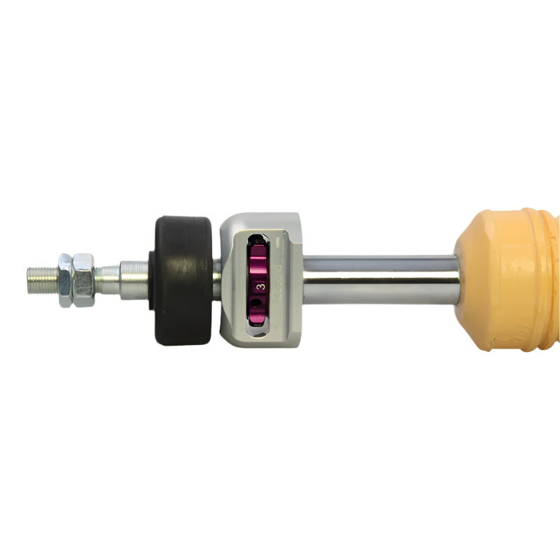 You don’t need any adjusting tools because of the patented compression adjuster at the lower end of the stainless steel housing. The adjustable compression damping with its twelve exact clicks allows you to manually influence body roll, without having to change the spring rate which optimally matches the rebound.