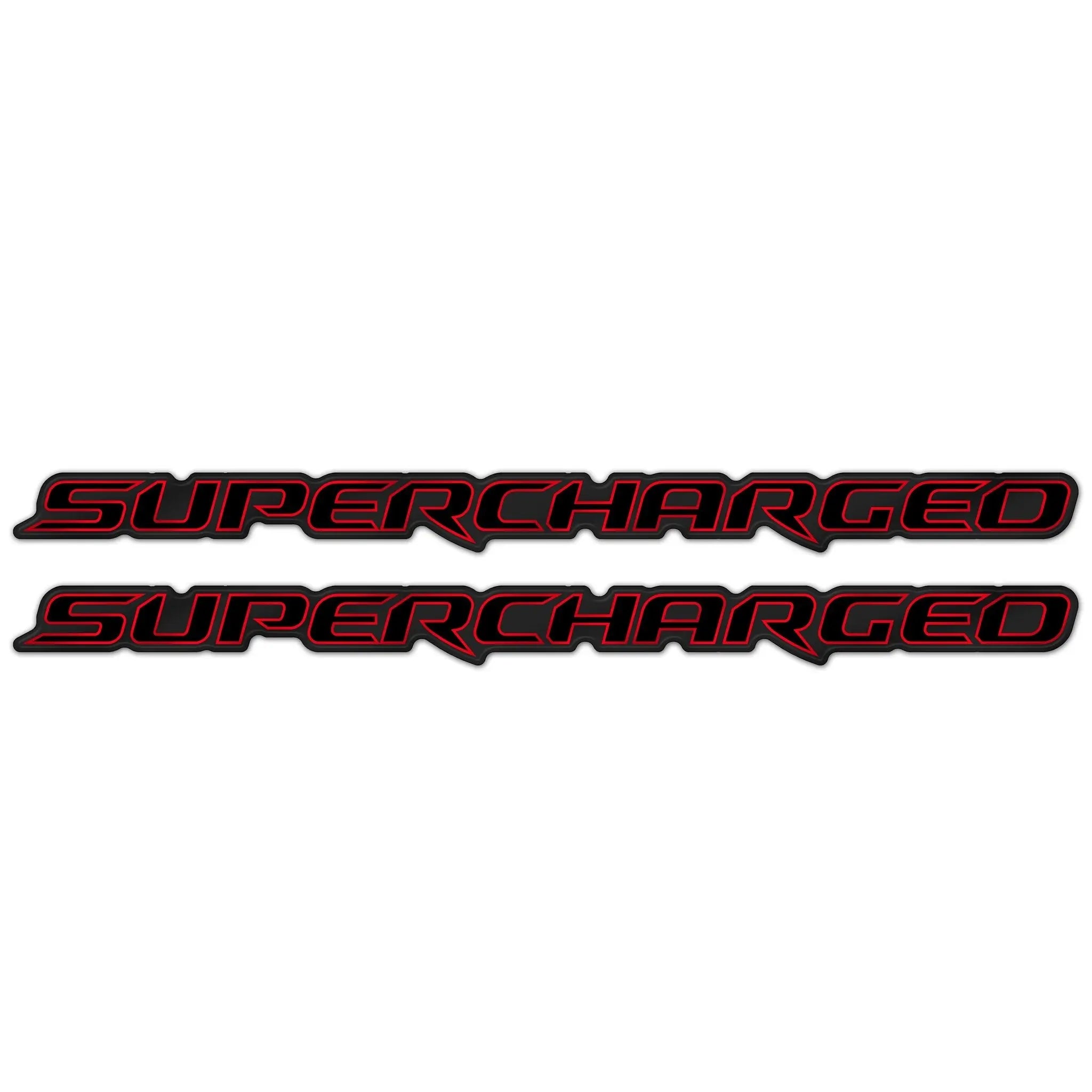 This set features a sexy combination of matte and gloss black and your choice of 12 available colors to customize the "Supercharged" text (image shown in 'Red').