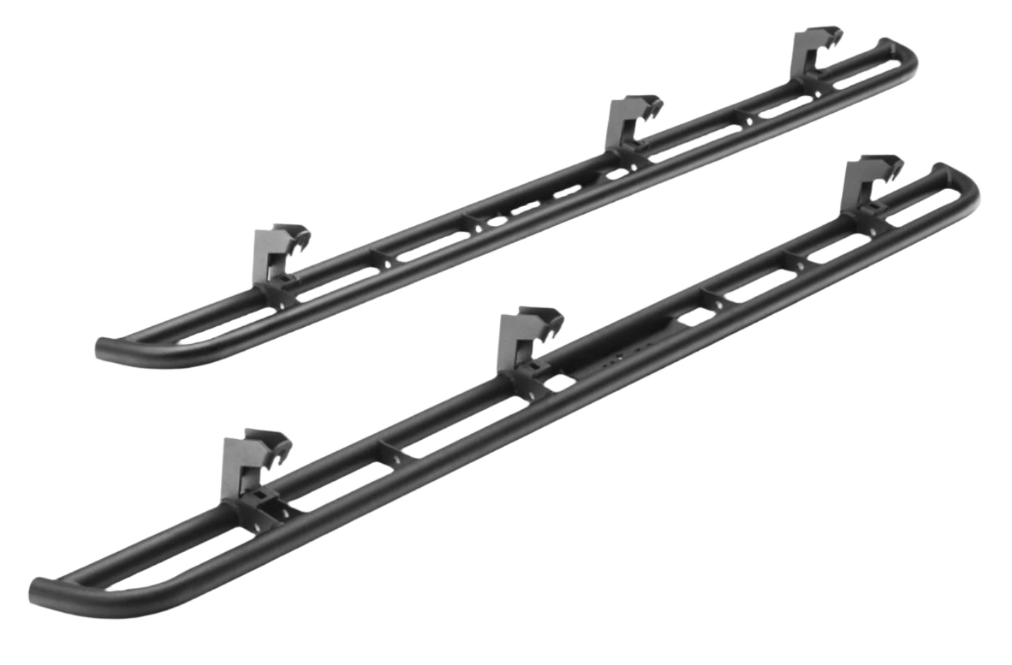 N-FAB RKR Rails Provide superior protection while enhancing the look of the vehicle. Constructed using 0.12 in. wall, 1.75 in. tubular steel, RKR Rails are treated inside and out for extra corrosion resistance so you know they are built to last. Finished with a durable textured black powder coat, N-FAB RKR Rails look as good as they perform both on and off-road. Making a great product even better, N-FAB offers optional Detachable Steps that are compatible with all N-FAB RKR Rails and Factory Toyota FJ Rock Rails. These steps offer convenient vehicle access for daily use and can be removed to allow for maximum group clearance when off-road.