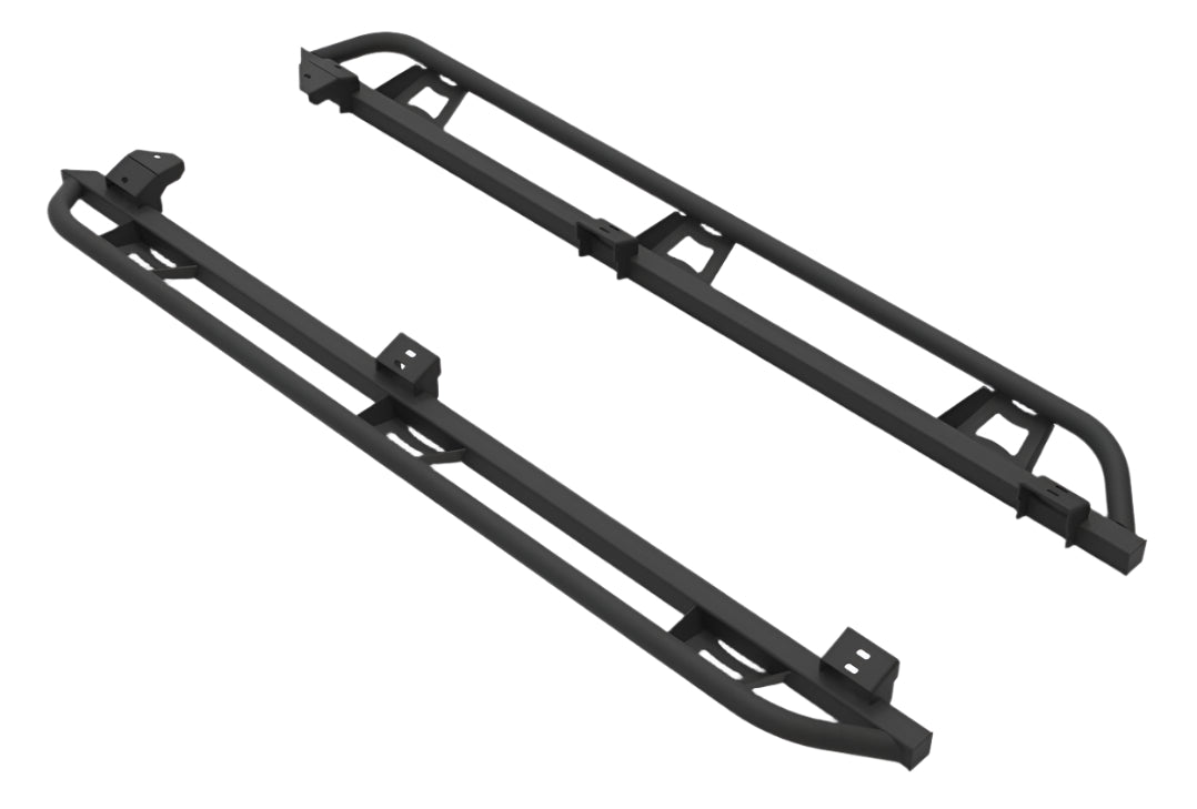 The N-FAB TrailSlider is a body-mount rock slider that features 3/16 heavy gauge steel tubing and gussets that will hold up to extreme conditions. The TrailSlider also comes powder-coated in our durable, textured black finish. Easy to install with no special tools required, the new N-FAB TrailSlider is the ultimate upgrade for any 4-Runner, Wrangler, Tacoma, Colorado, and Ranger.