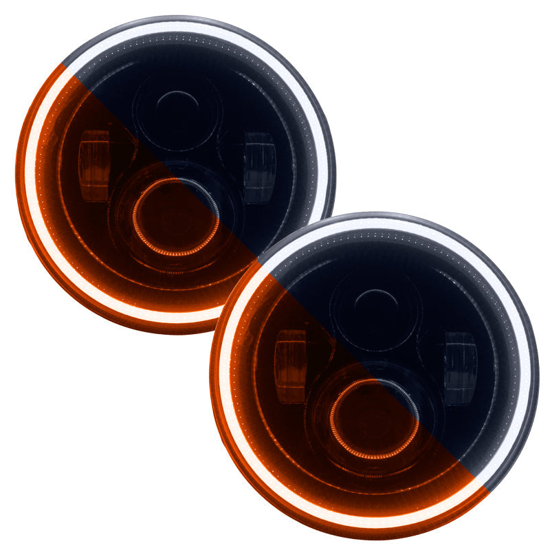 The Ultimate LED replacement Halo Headlight for the Jeep Wrangler JK NOW with an Integrated Amber Switchback Turn Signal! Increase night time visibility with high-quality LED illumination focused through advanced precision optics. Upgraded internal LED driver components allow the LED Low Beam to work with your JK Wrangler without the use of "flicker" adapters or other additional devices. Latest Improvements include: Improvements in brightness and reliability by adding a constant current LED driver to the main circuit board. Increased Reliability of the overall lifespan of the LEDS. Wider Input Voltage Range: The new SMD Halos can operate on a very wide voltage range from 12V-24V so that voltage spike can not damage the LEDs. Brighter/ More Even Light- by moving the heat load of the resistors off the PCB we are able to increase the number of LEDs on the circuit board without thermal issues. LED chips upgraded from a Cree LED to a Phillips Luxeon ZES chip.