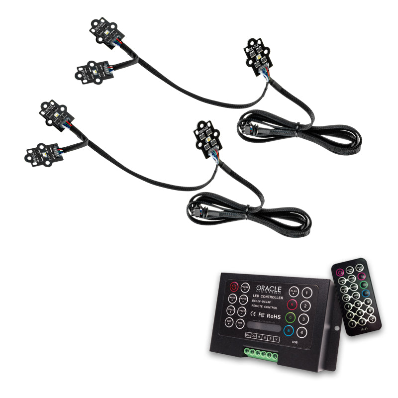 Style your truck with this ColorSHIFT RGB+W Headlight DRL Upgrade for 2020-2021 GMC Sierra 2500/3500 HD from ORACLE Lighting. Featuring our high-performance RGB+W chips, this kit allows you to use the existing DRL feature on your GMC Sierra LED Headlights and easily convert it to color-changing DRLs while maintaining a true white DRL function. Upgrade your lights to any color imaginable and instantly switch over to a crisp white OEM DRL color.These 2020-2021 GMC Sierra RGB+W DRL boards can make hundreds of different colors, dozens of patterns, control the brightness, and even the speed of the functions using one of our ColorSHIFT controllers! These replacement boards feature our ColorSHIFT technology along with an extra white LED which allows for truer white tones.Give your GMC Sierra the attitude adjustment and stand out from the crowd with the new ColorSHIFT RGB+W DRL kit from ORACLE Lighting! For even more customization, this product pairs perfectly with our 2020-2021 GMC Sierra 2500/3500 ORACLE ColorSHIFT RGB Demon Eye Headlight Upgrade!Features: Bright output with less power consumption True white OEM DRL color Control colors, brightness, speed, and functions with controller Customized look with even more personalization with ColorSHIFT technology 1 year warrantySpecifications: This product is designed to fit models with the factory LED DRL option. Headlight disassembly required. Professional installation recommended with our premium silicone sealant. White and amber are considered on-road legal colors. Other colors not intended for on-road use; please verify your state and local driving laws.Kit Includes the following: ColorSHIFT RGB+W DRL PCBs for Driver and Passenger Side Headlights Constant Current LED Driver Hub with DRL Trigger Wire Heavy-Duty IP67 Wiring Adapters.