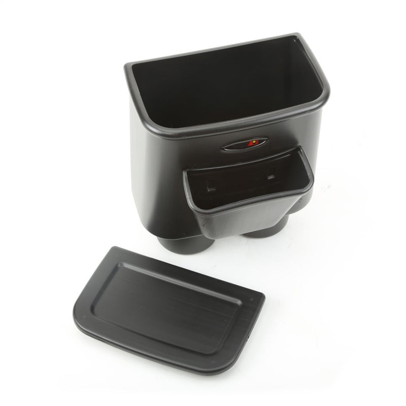 The perfect organization solution for your Jeep! The new Rugged Ridge Back Seat Organizer features two separate storage areas to organize wayward trash; toys; drinks; iPods and other clutter. Each organizer is designed to instantly fit into the rear cup holders of your 2007-10 Jeep Wrangler and includes a removable double walled lid. The large storage area will hold up to three 12oz. soda cans or two 16.9oz. water bottles with ice. The top lid can be easily removed creating a handy writing surface or small tray. The front tray can keep cell phones; iPods or other small items from rolling around the back seat. Easily removable to clean and empty; this truly is a must for your Jeep!