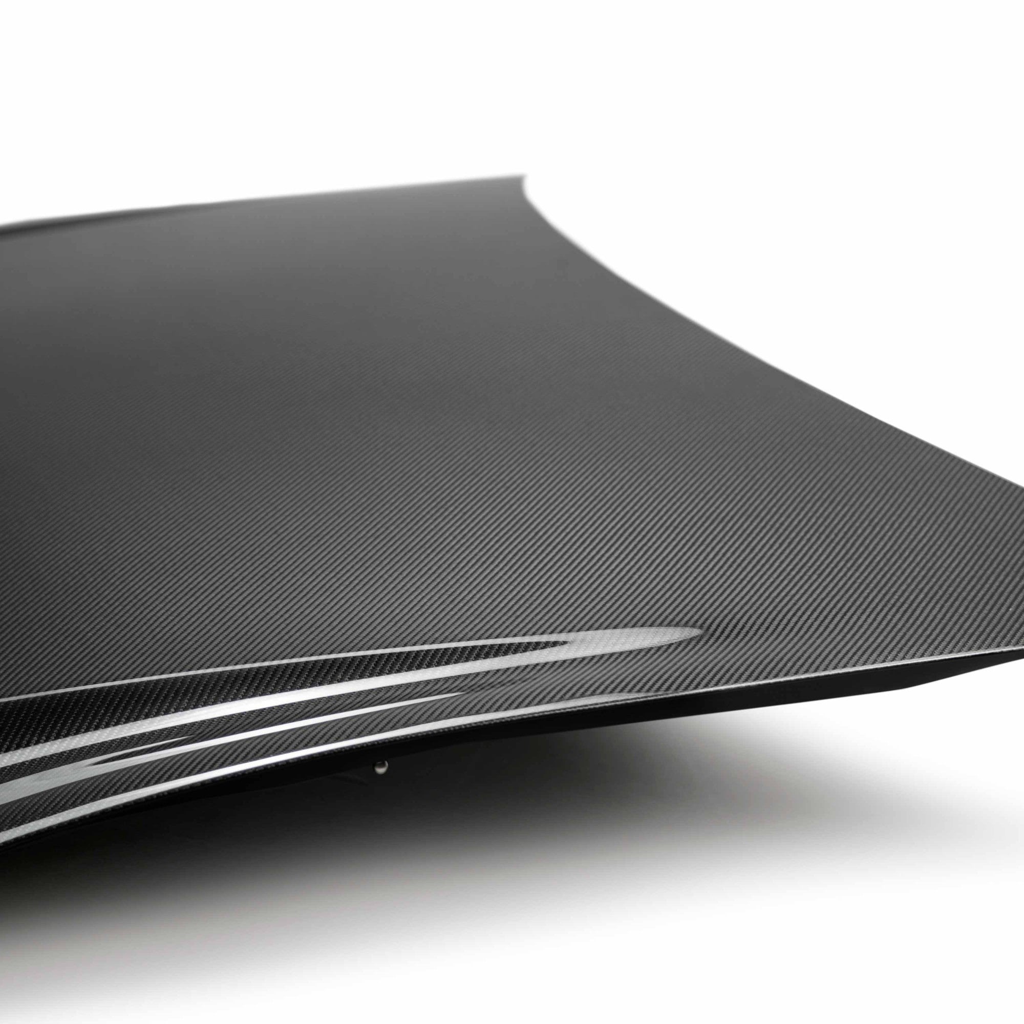 Upgrade your Lexus RC with the Seibon HD17LXRC-OE OE-style carbon fiber hood, designed for 2015-2020 RC models excluding RCF. This hood replaces the factory unit with a lightweight carbon fiber construction that cuts weight for improved handling and acceleration. Handcrafted with a consistent 3K 2x2 twill weave and glossy clear coat finish for direct bolt-on style and durability.