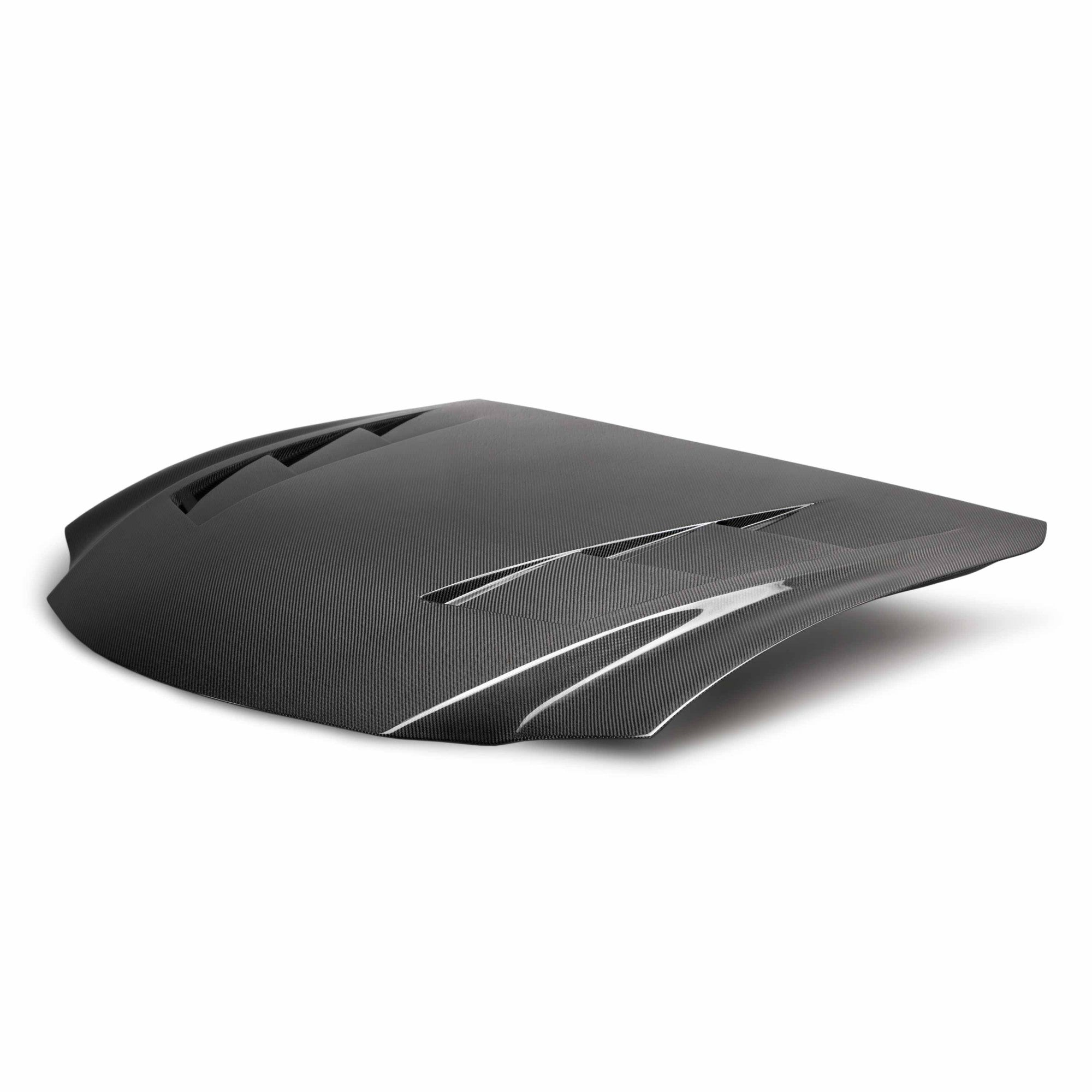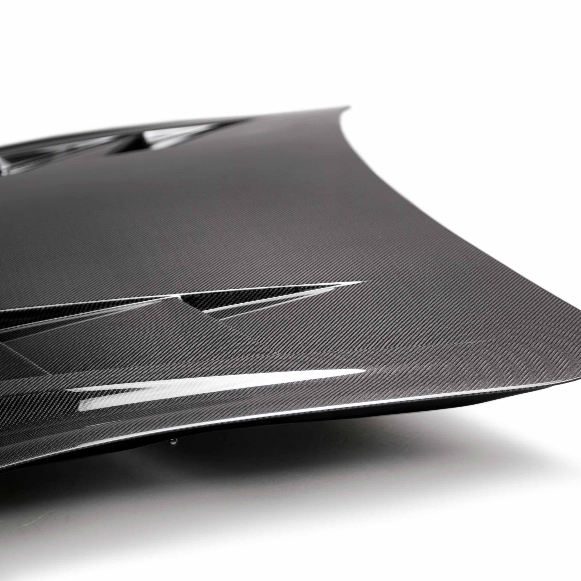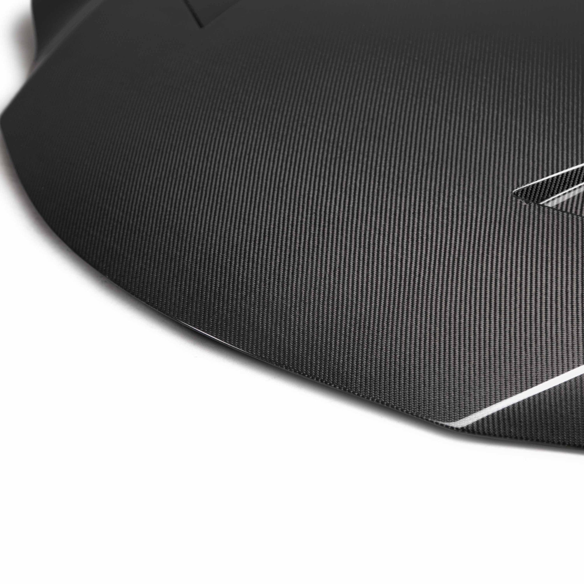 Handcrafted Seibon HD17LXRC-TS TS-style carbon fiber hood fits 2015-2021 Lexus RC excluding RC F models. This hood delivers major weight reduction for better acceleration and handling while boosting engine bay ventilation through strategic venting. Aerodynamic shaping cuts drag and adds downforce ideal for track or street driving.