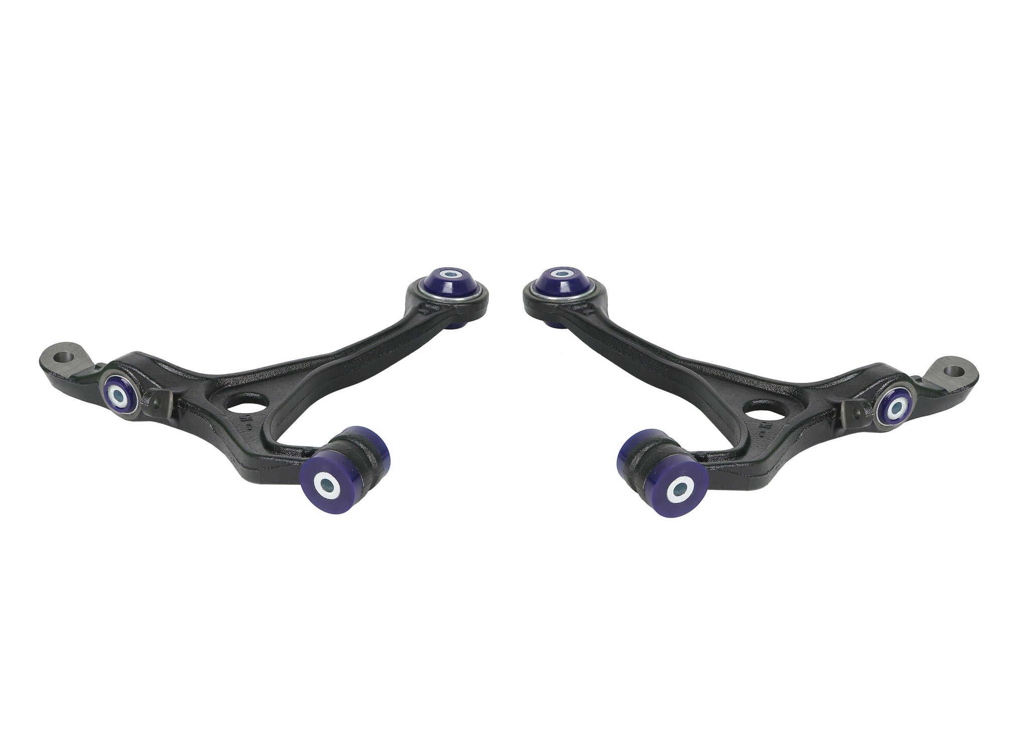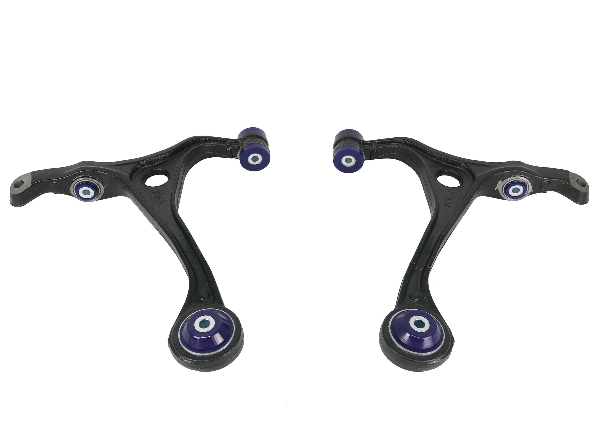 Control Arm Lower - Arm Assembly SuperPro's fitter friendly complete front lower control arms offer not only a significant performance and durability upgrade - they also offer an easy DIY or professional install. No pressing in new bushings - these arms arrive fully assembled with pre-installed SuperPro bushings. We've worked hard to make these a huge bang-for-the-buck upgrade with fully upgraded and outfitted arms offering a front end refresh for your ride!
