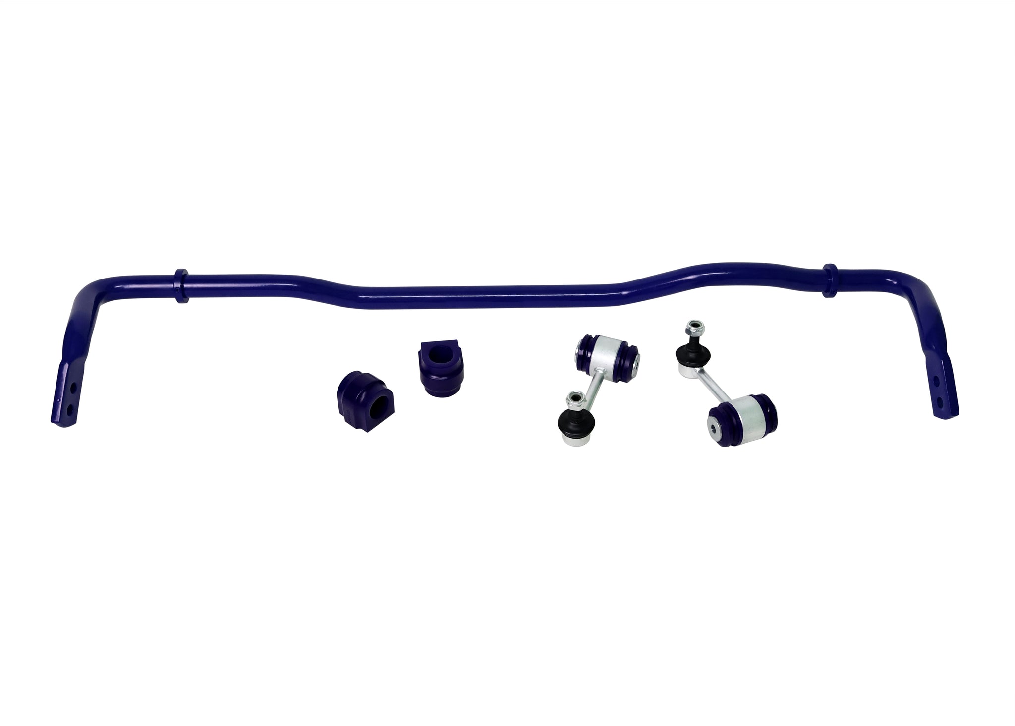 Sway Bar - 24mm 2 Point Adjustable Rear Sway Bar And End Link Set For Improved Stability 24mm adjustable rear sway bar with heavy-duty end links for improved stability, handling, and reduced body roll in cornering If you are looking for increased cornering capabilities with decreased body roll, Roll Control sway bars are the answer! Adjustable sway bar rates can be increased between 30-50% over OE sway bars by simply changing the end link position on the sway bar. In addition to the fundamental body control and roll reduction adjustable bars allow owners to quickly and easily adjust chassis balance with common hand tools to significantly alter the car's behavior to suit how or where the car is being used. Looking for more rotation at lower speeds at a weekend AutoX event? Move the rear bar to a stiffer position and/or the front bar to a softer position. Need a more neutral balance for higher speed track work where the front and rear end break away more uniformly and naturally? Adjust the bars to counter understeer or oversteer for the most confident and predictable handling. Adjustable design for customizable handling balance Heavy-duty end links for durability under load Improves stability and cornering response 24mm diameter bar for increased roll stiffness