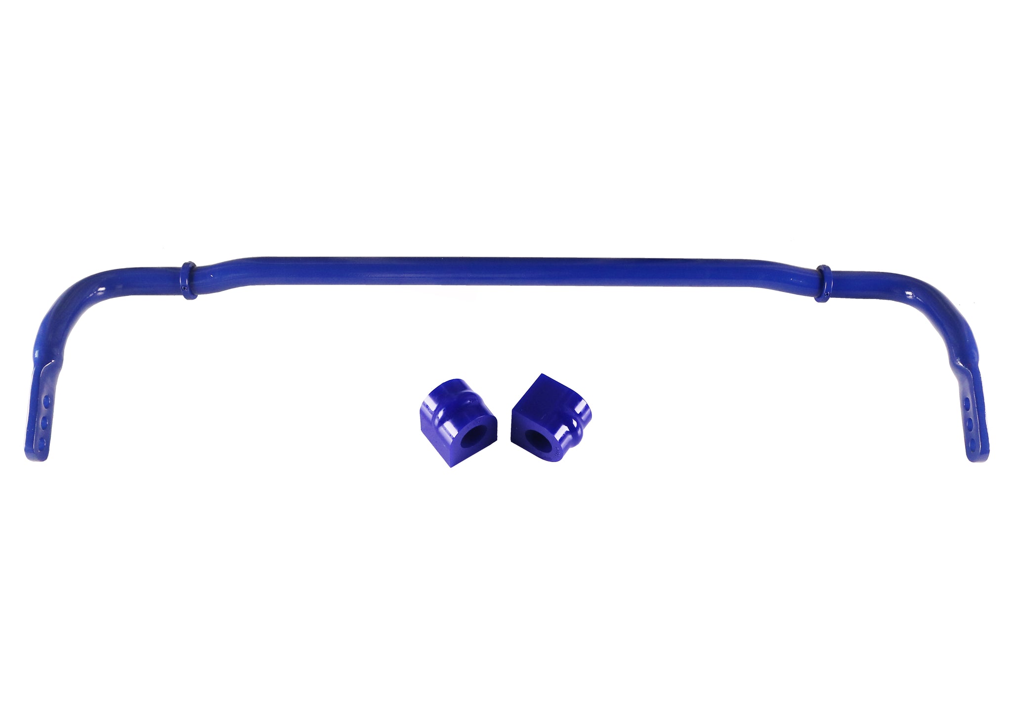 Sway Bar - 30mm 3 Point Adjustable If you are looking for increased cornering capabilities with decreased body roll, Roll Control sway bars are the answer! Adjustable sway bar rates can be increased between 30-50% over OE sway bars by simply changing the end link position on the sway bar. In addition to the fundamental body control and roll reduction adjustable bars allow owners to quickly and easily adjust chassis balance with common hand tools to significantly alter the car's behavior to suit how or where the car is being used. Looking for more rotation at lower speeds at a weekend AutoX event? Move the rear bar to a stiffer position and/or the front bar to a softer position. Need a more neutral balance for higher speed track work where the front and rear end break away more uniformly and naturally? Adjust the bars to counter understeer or oversteer for the most confident and predictable handling. Sized by vehicle application; SuperPro's range of sway bars not only improve grip and manage roll but also offer straightforward adjustability so owners can quickly and easily dial in their desired handling balance with common hand tools SuperPro sway bars are precisely formed for a factory fit and to ensure proper fitment and ease of adjustability on our multi-position bars allowing you to tailor your handling balance quickly and easily while maximizing compatibility. SuperPro's sway bars feature a four-step finish with a zinc treatment, epoxy coating and two-stage powder coat to provide a long-lasting high-quality finish and to ward off corrosion in the harshest environments