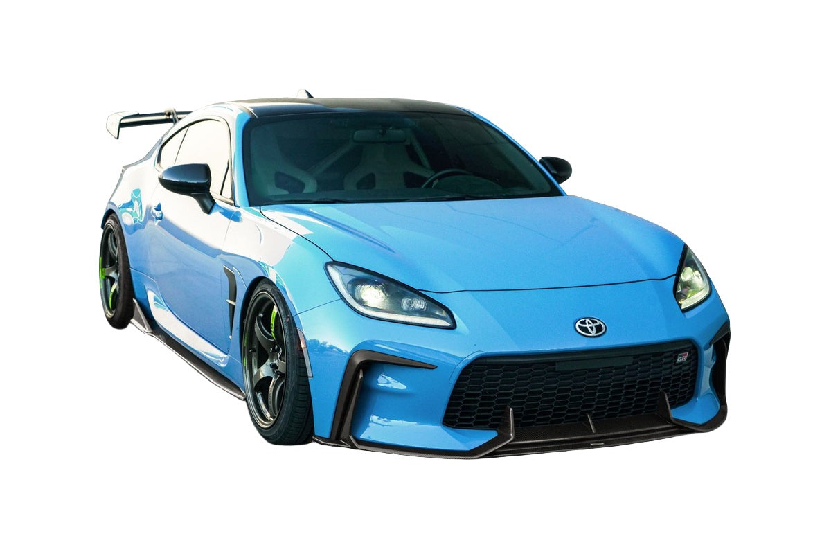 Whether you're building your GR86 for the track or for show, the ADRO carbon fiber front splitter will be up for the task. This front splitter is made from real carbon fiber and is designed to increase downforce while taking the front end design of the new GR86 to an entirely new level. This front splitter will fit just like an OEM part and will transform the front of your GR86.