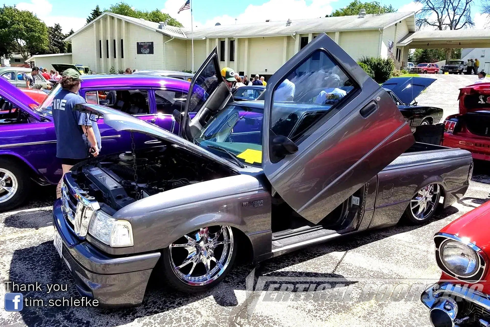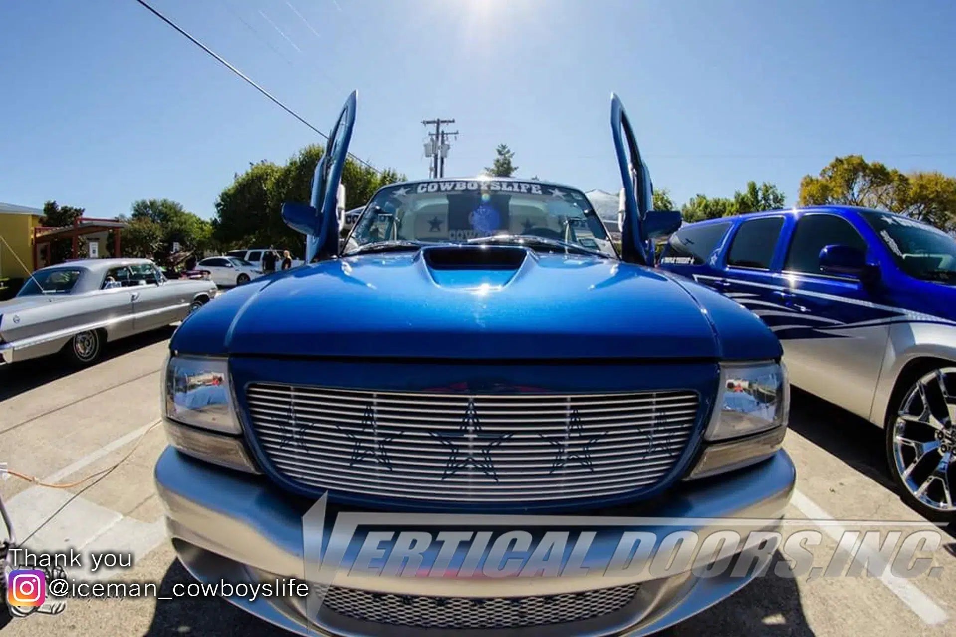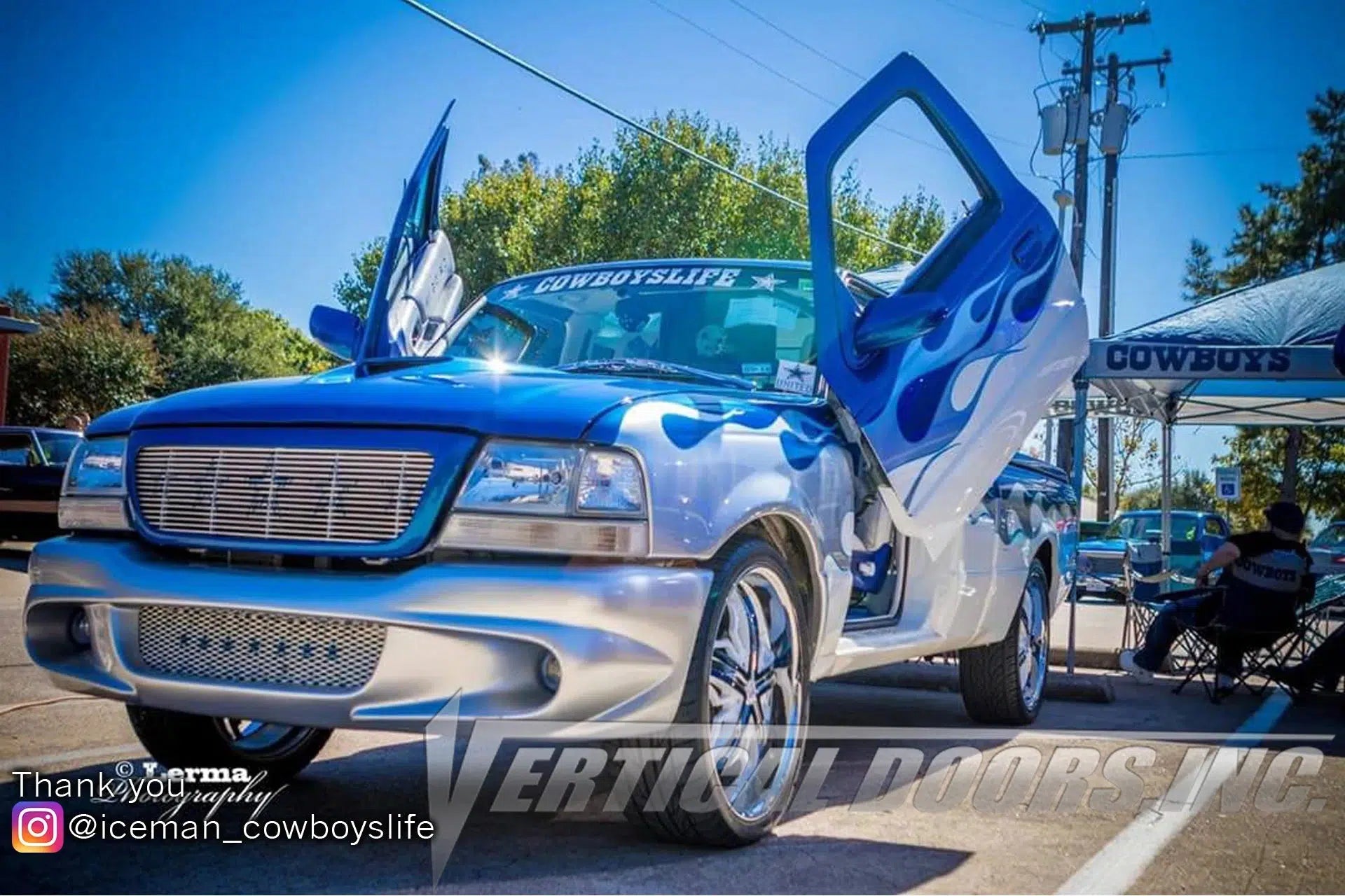Vertical Door Kit for a Ford Ranger 1998-2008 Lambo Door Conversion Kit made specifically for every vehicle. VDI only manufacture's the best kits, highest quality, best customer service, strongest kits, and the most affordable kit for the quality. Our line-up includes all of the major vehicle manufactures. This system is everything you need for a successful, reliable and cost effective conversion in a minimum amount of time. Vertical Doors, Inc., kits are proudly made and patented in the United States. Bolt-on kits made specifically for your vehicle. Not only are our kit easy to install but they are also easy to operate, basically open your door like normal until it stops at a predetermined position then raise your door. You also have the option of opening your door as factory unlike most Lambo Doors, Scissor Doors, Wing Doors, Butterfly Doors, Lamborghini Doors, etc, imitators.