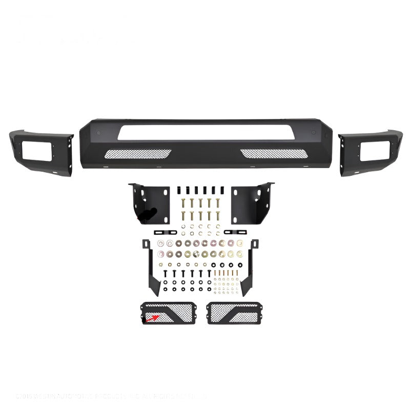 Westin's Pro-Mod Front Bumper was engineered to combine multiple design elements into a great looking modular design for late model trucks. Functionality, style and efficiency are the byproduct of utilizing lightweight 10 gauge sheet metal and 4 gauge mounting brackets, resulting in an extremely efficient lightweight design. This weight reduction combined with Pro-Mod's unique 3-piece modular design reduces shipping costs without sacrificing style or durability. Ground clearance and angle of approach is improved in virtually any driving situation. Pro-Mod also features a 10 gauge valance (included in some applications) and/or a bolt on skid plate (sold separately). Lighting options abound, since Pro-Mod will accept most 30" light bar in its center mounted position, and also fits Outlaw LED Light Kits for maximum lighting coverage, options and style (lights sold separately). Easy to install with a durable textured black finish. Once you see the Pro-Mod the choice is easy.
