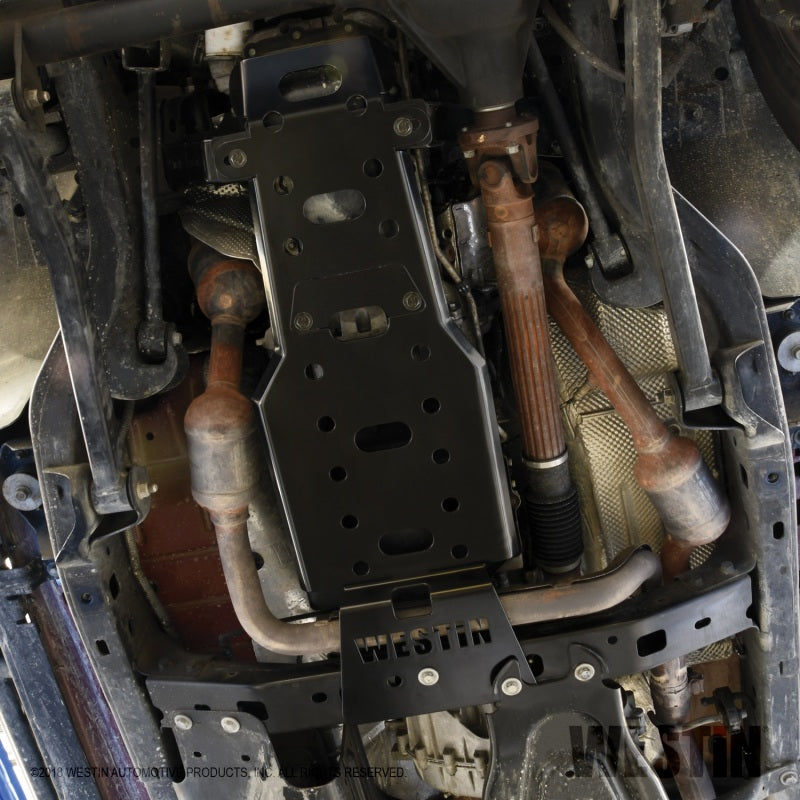 Westins Snyper Oil Pan Skid Plate is a full length plate that protects both the oil pan and transmission from damage during offroad driving or rock crawling. The 7 gauge steel plate features a laser cut Snyper logo and other openings that help minimize weight, and has formed edges for maximum strength. The skid plate features a removable bolt-on plate for easy oil change access. Available for 2 door or 4 door Jeep(R) Wrangler. Optional gas tank, transfer case, evap and muffler skid plates available (sold separately).