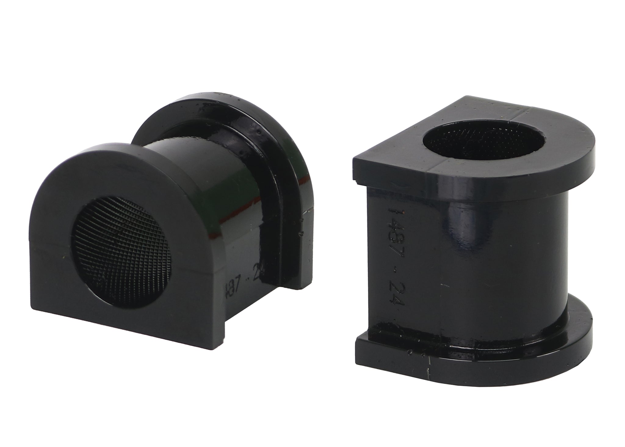 Sway Bar - Mount Bushing Whiteline Sway bar - 24mm mount bushing. Designed to fit a 24mm sway bar. Whiteline's sway bar mount bushings not only boasts the latest in bushing material technology but feature a knurled ID specifically designed to retain grease. Backed up by a Limited Lifetime Warranty. Whiteline bushings are made from the latest highest quality synthetic elastomer and designed to synchronize your suspension system for optimal safety, handling, performance, ride quality, longevity and reduced maintenance. They are the most positive link between your vehicles body, springs, struts, arms, bars and shocks. Internal grease reservoirs provide continual self-lubrication for optimum friction management. Whiteline's latest technology synthetic elastomer formulation boasts resistance to oil, grease, ozone and weathering. For use with W21301 or KBR10 Universal Saddles