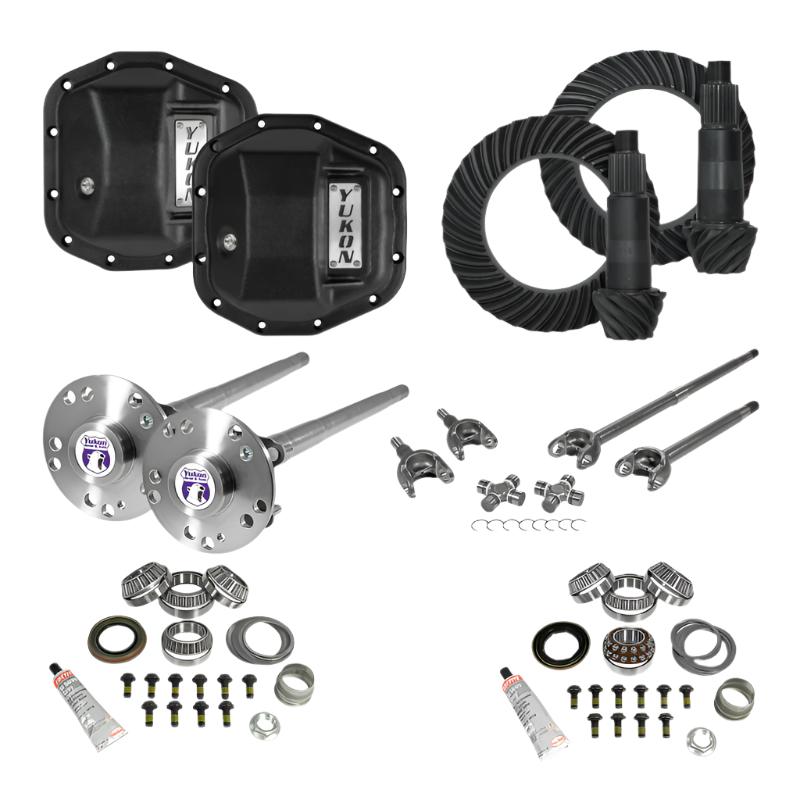 Upgrade your Jeep JL/JT Rubicon with the ultimate performance package from Yukon. The Stage 4 kit includes everything you need to take your off-roading experience to the next level. With front and rear ring and pinion sets, Master Overhaul kits, Yukon Hardcore Diff Covers, and chromoly front and rear axles, this package is designed to enhance your vehicle's performance and durability.